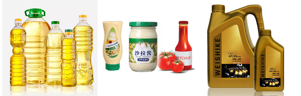 Ätbar olja (Sesam, oliv, jordnötter / blandning. Etc) Ketchup, majonnäs, chilisås etc. Smörjolja + speciallösningsmedel.